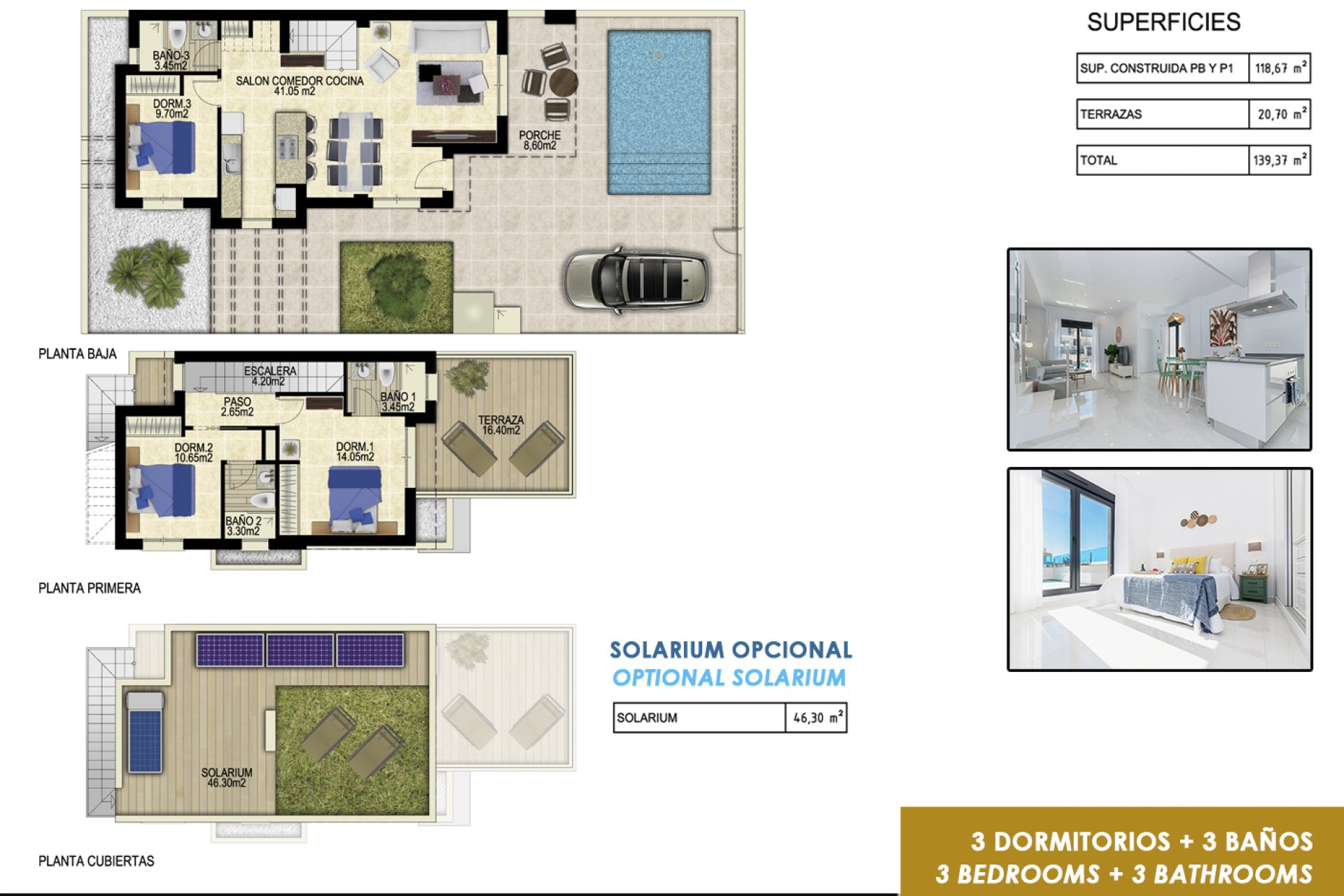 Cada propiedad está cuidadosamente diseñada para ofrecer el máximo confort. Con tres amplios dormitorios y tres baños modernos, estas viviendas garantizan espacio suficiente para toda la familia, combinando estilo y funcionalidad.