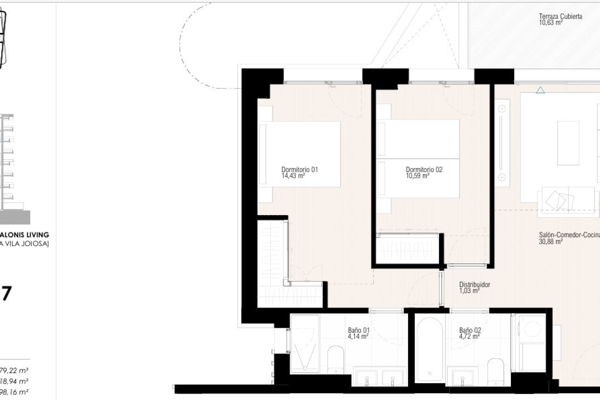 El exterior de las viviendas también está pensado para maximizar el disfrute del clima mediterráneo. Las terrazas privadas son ideales para relajarse al aire libre, y algunas unidades cuentan con jardines privados o solariums, ofreciendo un oasis personal para disfrutar durante todo el año. La proximidad al mar invita a paseos costeros y actividades acuáticas.