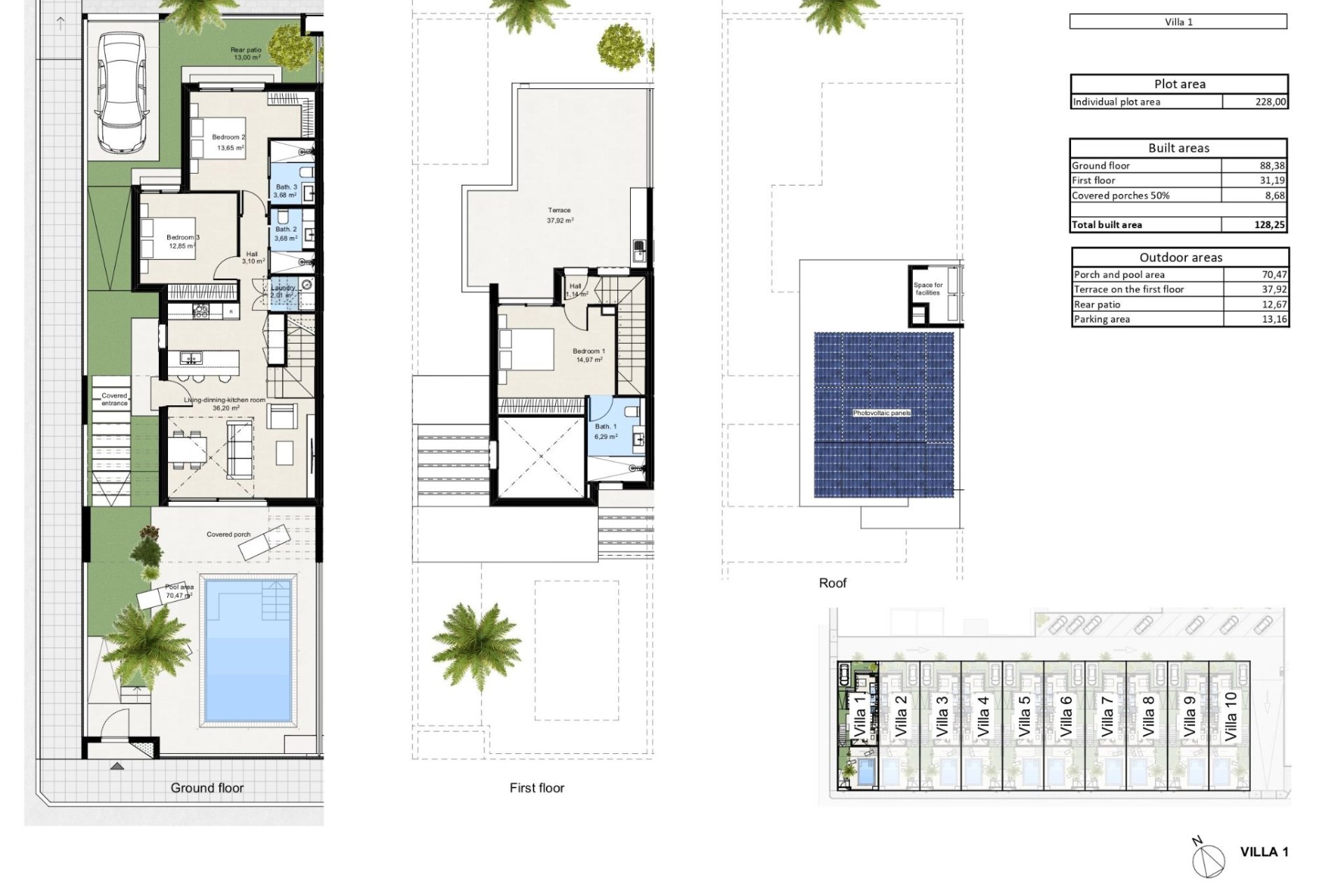 Cada vivienda está diseñada para maximizar el confort, con tres dormitorios y tres baños modernos. Los interiores destacan por su elegancia, con armarios empotrados que optimizan el espacio. La preinstalación de aire acondicionado asegura un ambiente agradable durante todo el año. Además, la cocina equipada con electrodomésticos modernos facilita el día a día.