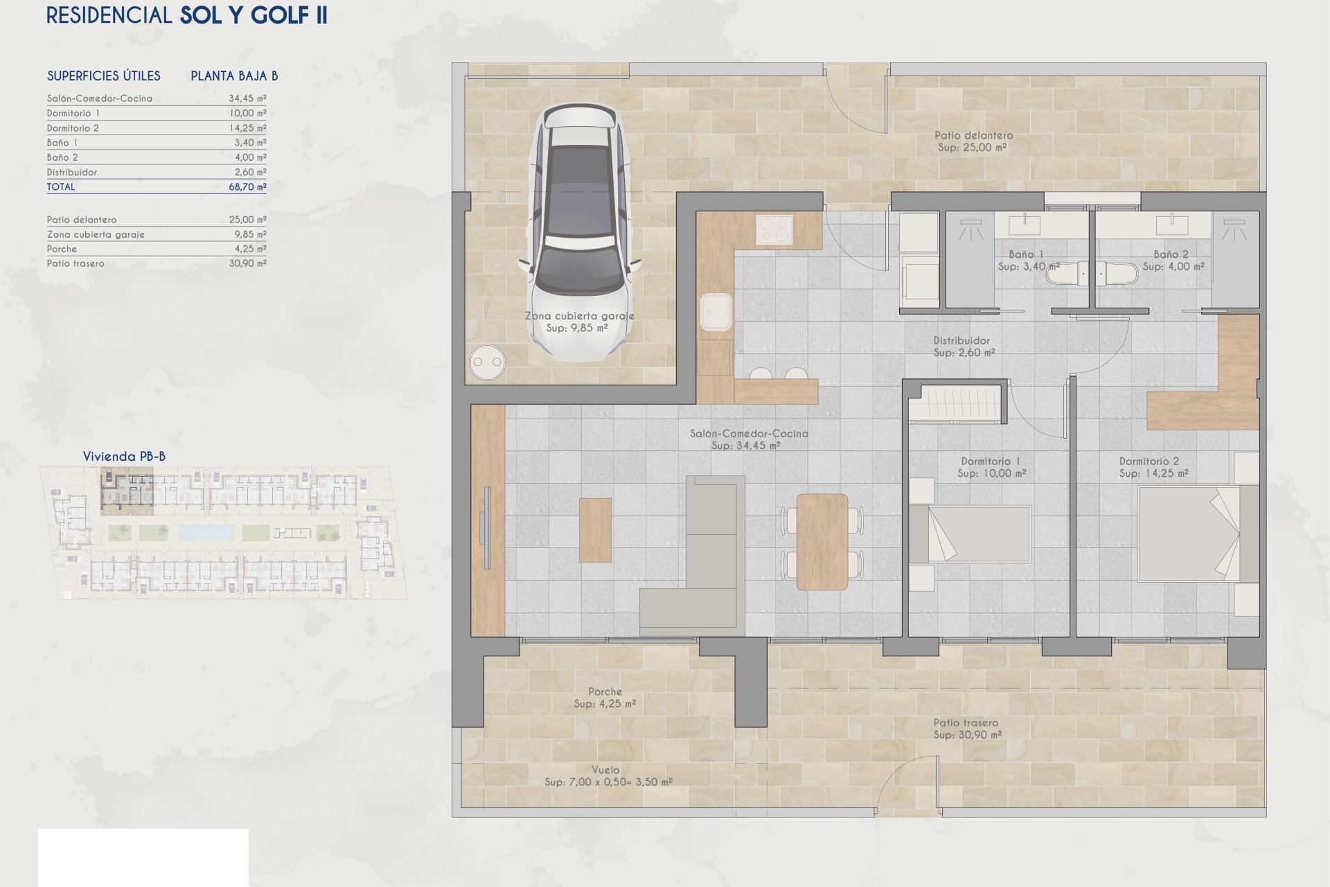 Este conjunto residencial ofrece una selección de 24 viviendas tipo bungalows, cada una con su propio solarium o jardín. Están ubicadas a tan solo 0.5 km de un campo de golf, lo que las convierte en una opción ideal para los amantes de este deporte. Además, la proximidad al aeropuerto, a 23 km, facilita el acceso a conexiones nacionales e internacionales.