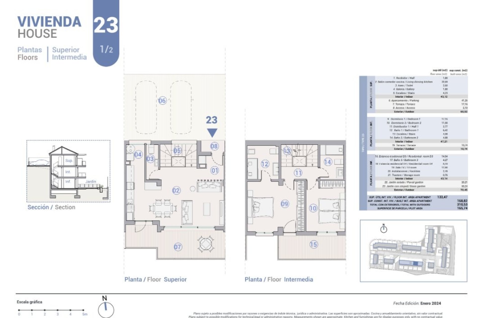 El exterior de estas propiedades es igualmente impresionante. Amplias terrazas y jardines privados ofrecen el escenario perfecto para disfrutar del aire libre. Además, cada vivienda dispone de un solárium y una piscina privada, creando un oasis personal para el relax y el entretenimiento.