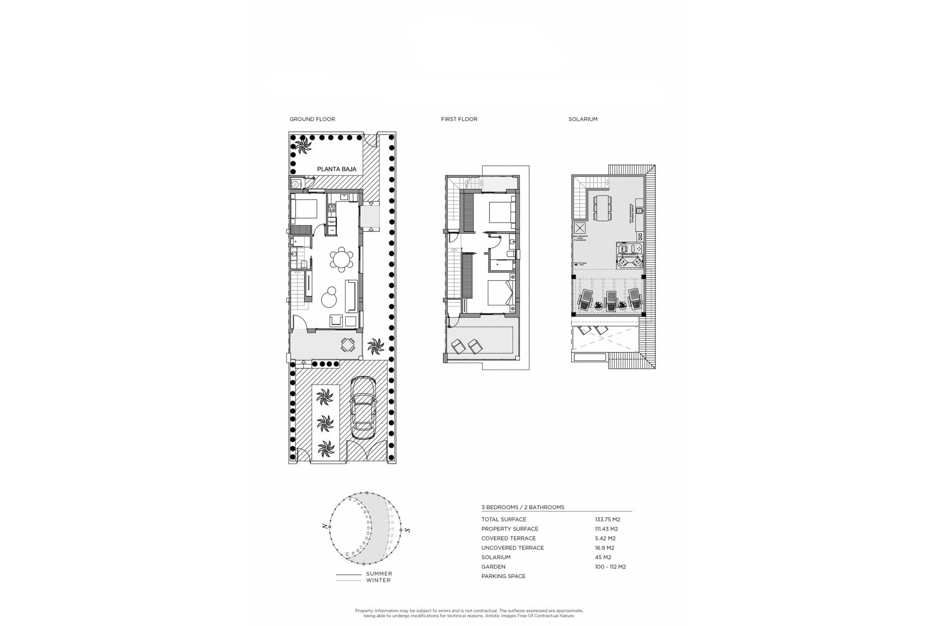 Šių namų išorinės erdvės yra suprojektuotos taip, kad maksimaliai išnaudotų Viduržemio jūros klimatą. Kiekviena nuosavybė turi privatų sodą, puikiai tinkantį atsipalaiduoti ar mėgautis veikla lauke. Privataus baseino buvimas prideda prabangos, leidžiant atsigaivinti karščiausiomis dienomis. Be to, namai turi terasą ir soliariumą, siūlantys daugybę erdvių poilsiui ar socializacijai lauke. Pergolės įtraukimas suteikia šešėlį ir stilių, sukuriant jaukią ir elegantišką atmosferą lauke.