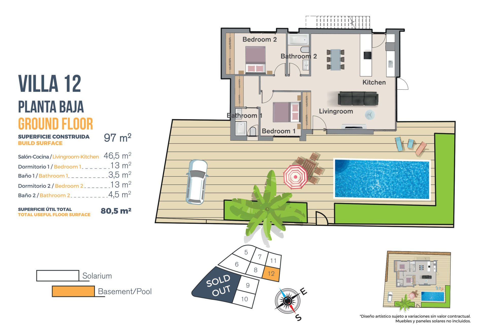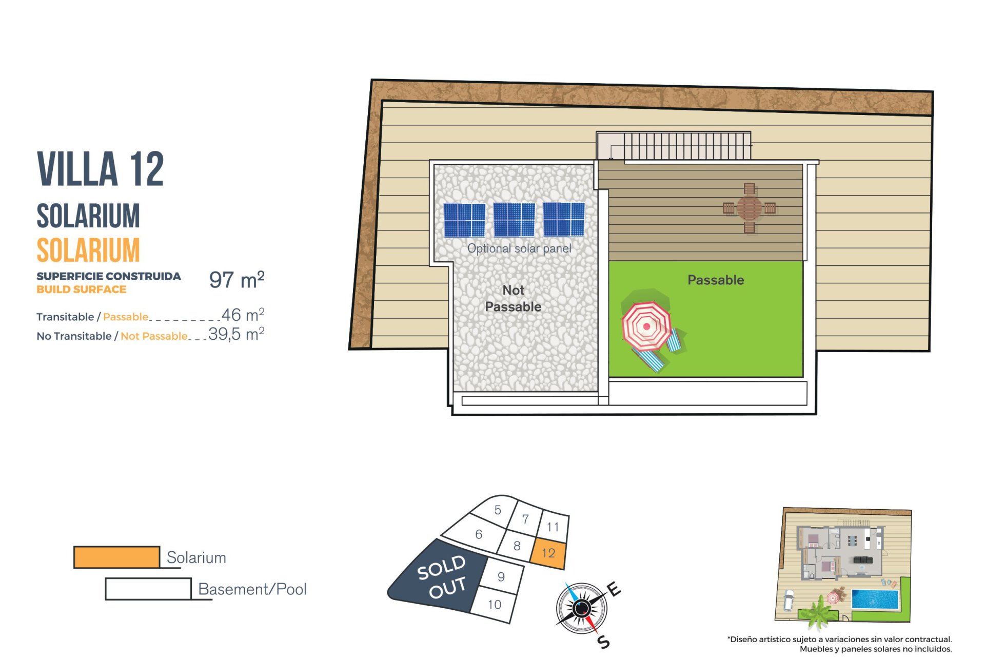 Kiekvienas namas turi privatų sodą, idealiai tinkantį mėgautis Viduržemio jūros klimatu. Be to, nuosavybės apima privatų baseiną, puikiai tinkantį atsigaivinti karštomis vasaros dienomis. Erdvi terasos suteikia papildomos erdvės lauko poilsiui, o soliariumas suteikia išskirtinę vietą atsipalaiduoti ir mėgautis vaizdais. Prieiga prie privataus garažo užtikrina patogumą ir saugumą gyventojams.