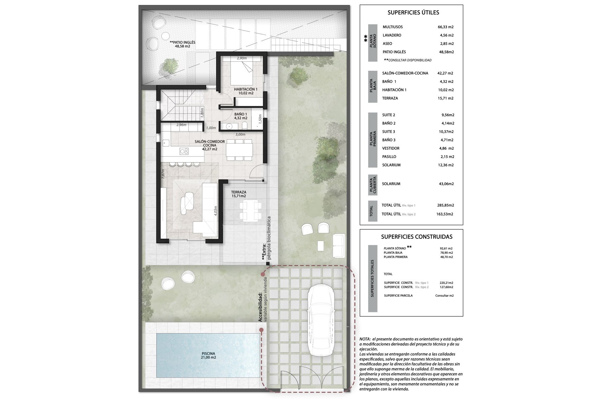Šių nepriklausomų namų Finestrate išorinės erdvės sukurtos mėgautis Viduržemio jūros klimatu. Kiekvienas objektas turi privatų sodą ir terasą, idealius atsipalaidavimo momentams lauke. Be to, jie turi soliariumą, kuris siūlo papildomą erdvę mėgautis saule ir panoraminiais vaizdais į jūrą. Kiekviename name esantis privatus baseinas prideda prabangos ir išskirtinumo, leidžiant mėgautis gaivinančiu maudymusi jūsų namų privatume. Pergolės papildo išorinį dizainą, suteikdamos šešėlį ir jaukią erdvę susitikimams lauke.