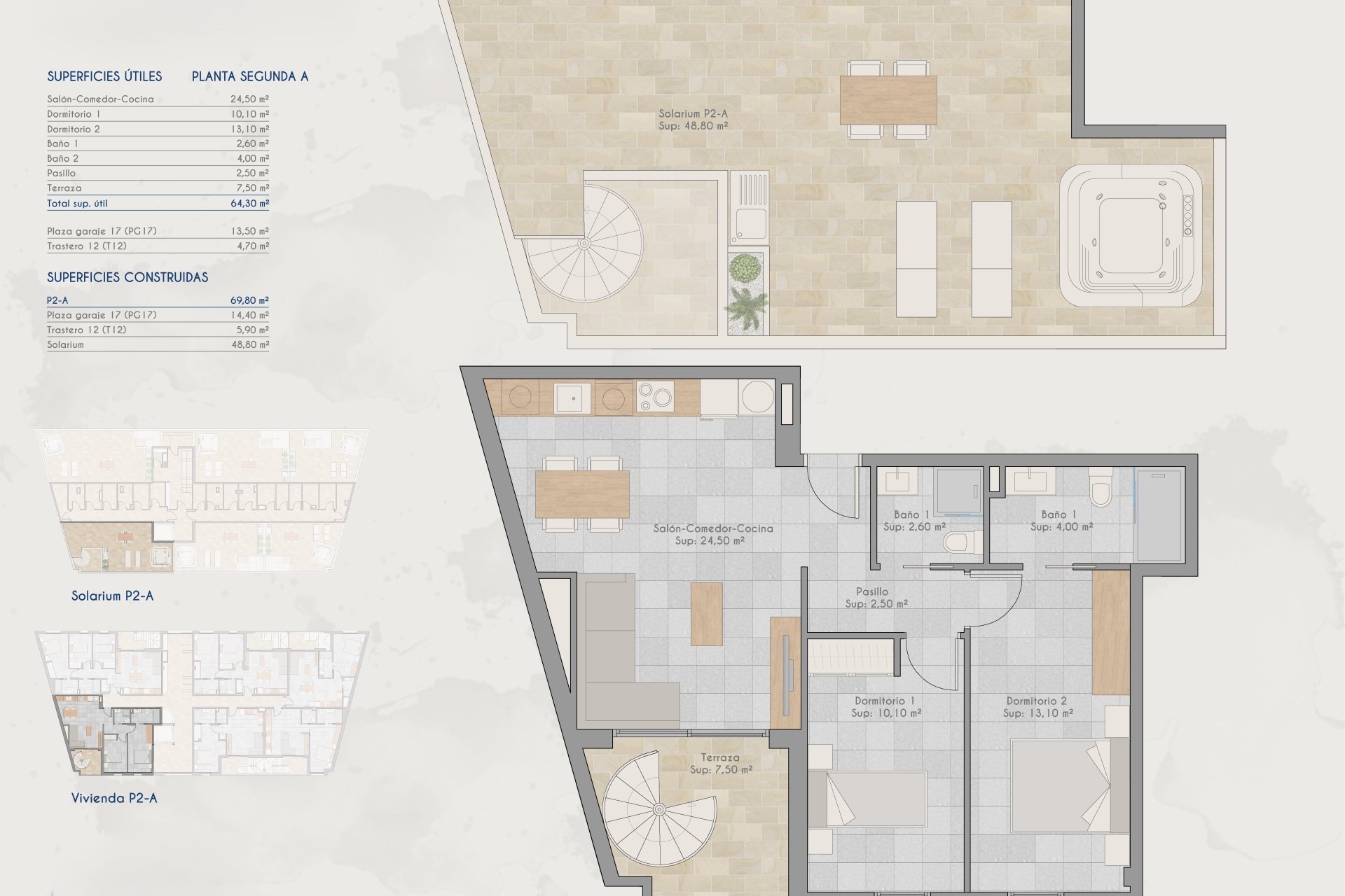 TaipĮsikūręs žavingame Lo Pagán miestelyje, šis išskirtinis gyvenamasis kompleksas siūlo įvairias būsto galimybes, kurios prisitaiko prie skirtingų poreikių ir gyvenimo būdų. Iš viso 17 nuosavybių, būsimi gyventojai gali rinktis iš apartamentų, pirmųjų aukštų ir mansardų, kiekvienas sukurtas maksimaliai komfortui ir funkcionalumui. Artumas jūrai, vos 500 metrų, leidžia mėgautis jūros brizu ir įspūdingais vaizdais, o oro uostas yra už 40 kilometrų, palengvinant tarptautinių ryšių pasiekiamumą. Ši vieta ideali tiems, kurie ieško pusiausvyros tarp ramybės ir prieinamumo, su visais šiuolaikiniais patogumais ranka pasiekiami.
