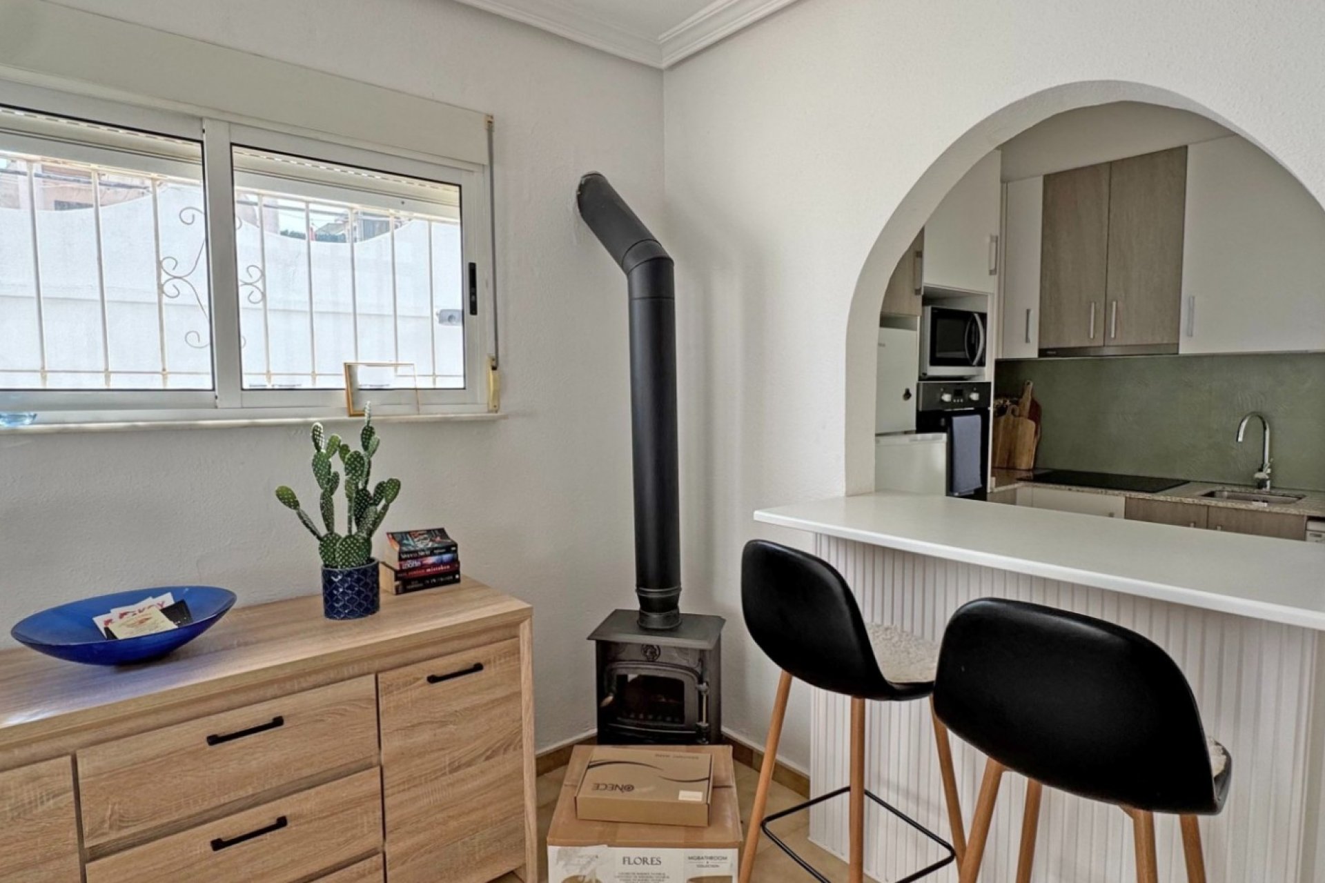 Binnen vindt u een open woon- en eetruimte, wat zorgt voor een lichte en praktische indeling. De woning wordt gemeubileerd verkocht, direct klaar voor gebruik of verhuur.
