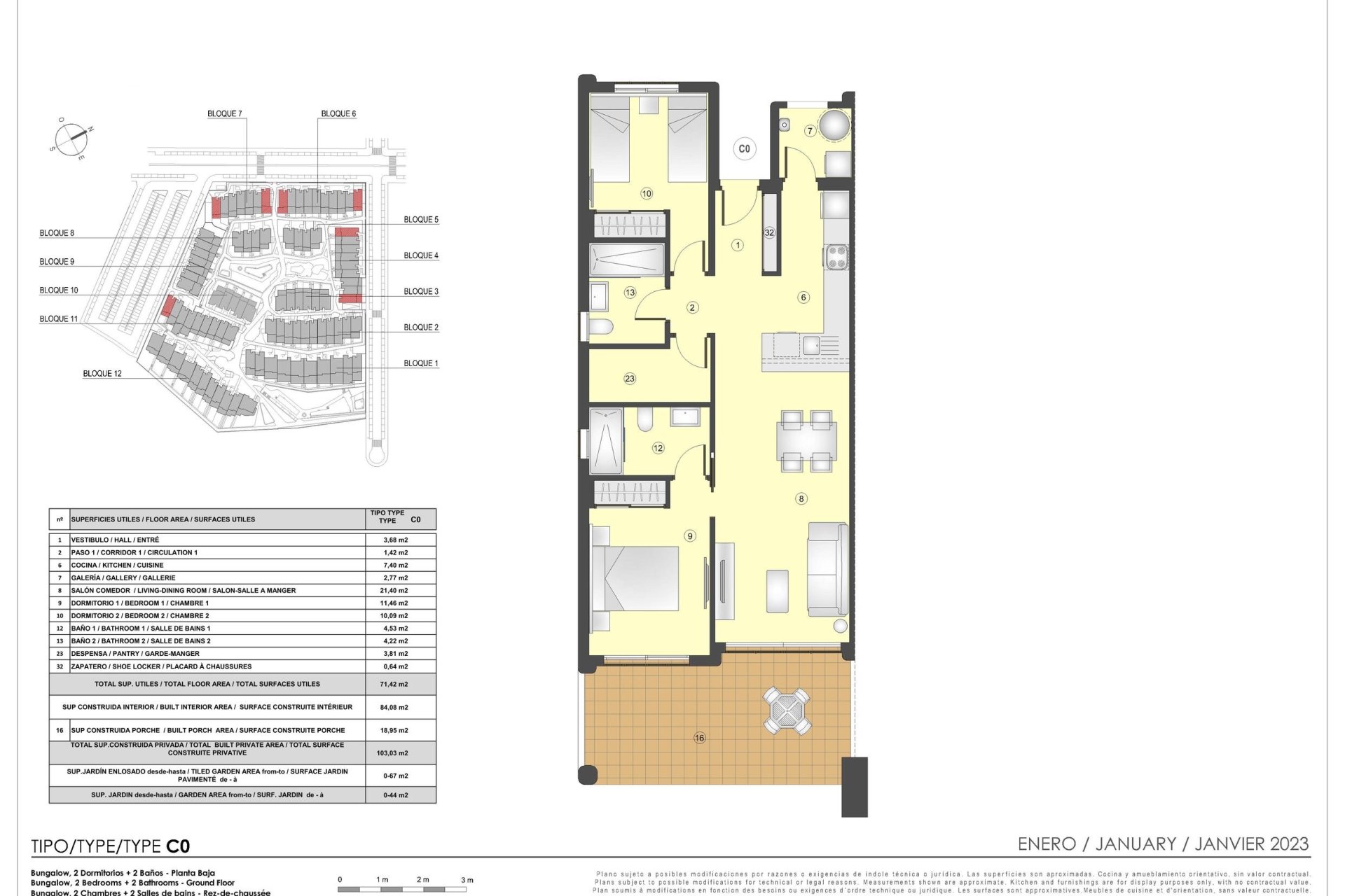 JaLigger i den sjarmerende byen Pulpí, tilbyr dette boligkomplekset et utvalg av 103 eiendommer designet for å møte behovene til de som søker et hjem i et privilegert miljø. Boligalternativene inkluderer high-bungalows og low-bungalows, hver nøye designet for å tilby komfort og funksjonalitet. Nærheten til havet, bare 1 km unna, gjør det mulig å nyte sjøbrisen og en avslappet middelhavslivsstil. Eiendommene er utstyrt med moderne funksjoner som klimaanlegg, gulvvarme og elektriske persienner, som sikrer et komfortabelt miljø året rundt. I tillegg er alle boligene fullt møblert og utstyrt med hvitevarer av høy kvalitet, noe som gjør flyttingen problemfri. Innebygde skap gir effektiv lagring, mens muligheten til å lade elektriske kjøretøy i fellesgarasjen gir et snev av modernitet og bærekraft.