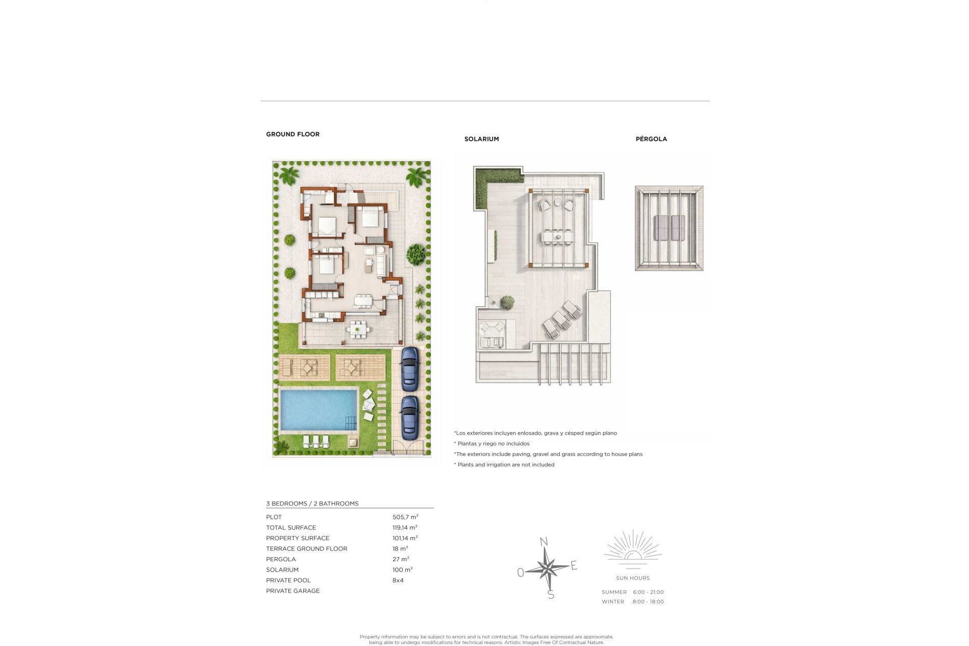 Utstyrt med en pergola, tilfører eiendommen et sofistikert preg til det utendørs miljøet. De innebygde skapene på soverommene tilbyr en praktisk og elegant lagringsløsning, og holder orden i hvert rom.