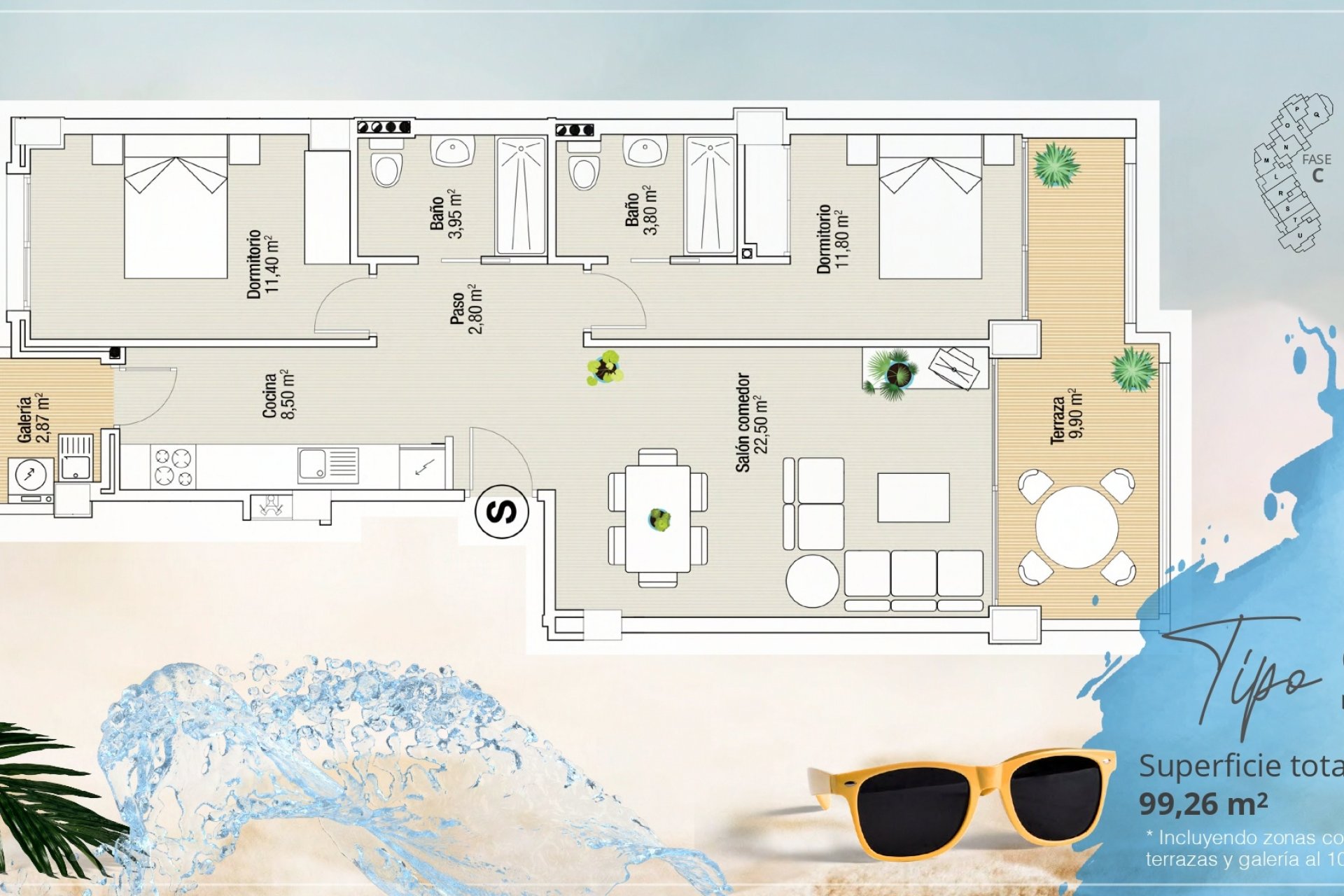 JaLigger i det eksklusive området La Manga del Mar Menor, tilbyr dette boligkomplekset et utvalg av 167 eiendommer som inkluderer leiligheter og penthouse. Designet for å maksimere komfort og funksjonalitet, utmerker disse boligene seg med sin imponerende havutsikt, som lar deg nyte skjønnheten i omgivelsene fra hjemmets komfort. Typologien til eiendommene varierer mellom leiligheter og penthouse, med alternativer med 1, 2 og 3 soverom, tilpasset ulike familie- og personlige behov. Hver bolig er utstyrt med moderne funksjoner som klimaanlegg, innebygde skap og elektriske persienner, som sikrer en komfortabel og moderne livsstil. I tillegg er eiendommene fullt møblert, klare til innflytting.