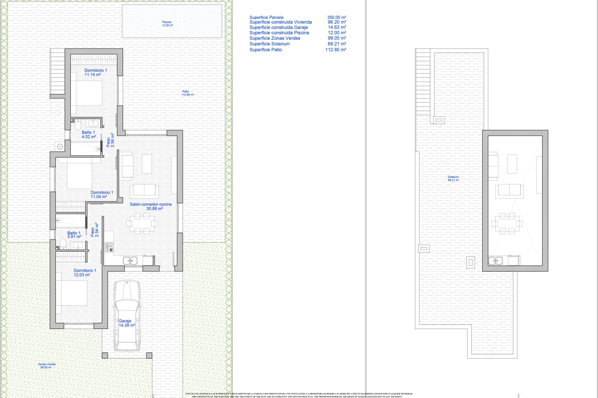 Boligene har et utvendig design som kombinerer funksjonalitet og estetikk. Hver eiendom har en privat hage, perfekt for å nyte utendørs øyeblikk i rolige omgivelser. De romslige terrassene gir ekstra plass til å slappe av eller ta imot gjester, mens solariumet gir et ideelt sted for soling og nyte utsikten. I tillegg tilfører tilstedeværelsen av en pergola et snev av eleganse og skygge, og skaper en koselig atmosfære på solrike dager. Inkluderingen av et privat basseng i hver bolig gjør det mulig å nyte en forfriskende dukkert uten å forlate hjemmet, og blir et sentralt element for familieglede.