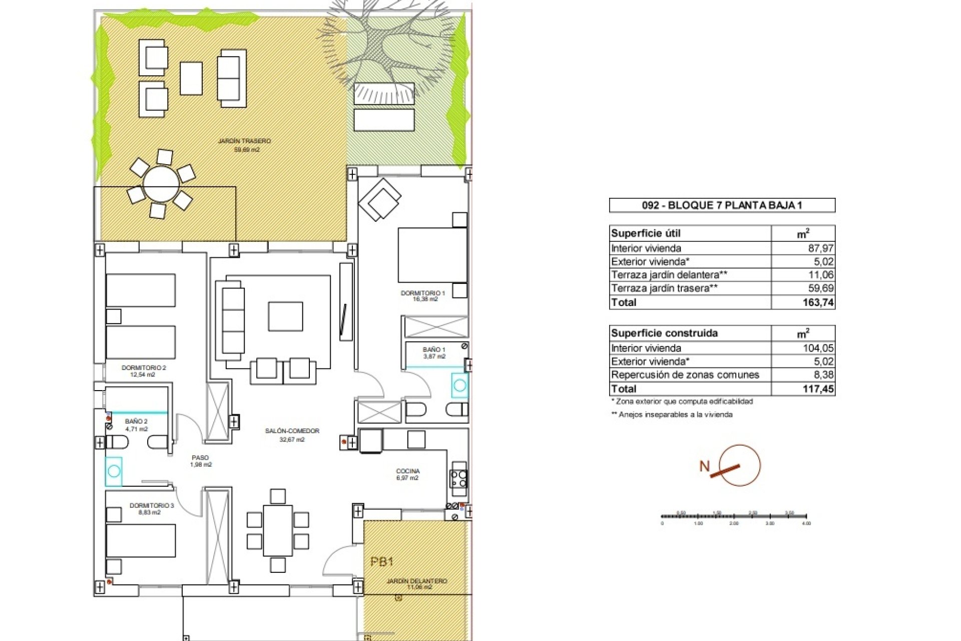 Uteområdene til denne boligen i Vera er designet for å tilby et behagelig og funksjonelt miljø. Boligene har terrasser og private hager, ideelle for å nyte middelhavsklimaet og arrangere utendørs sammenkomster. I tillegg inkluderer noen typologier et solarium, som gir ekstra plass til å slappe av og nyte utsikten. Tilstedeværelsen av elektriske persienner sikrer komfort og brukervennlighet, mens video dørtelefonen gir et ekstra nivå av sikkerhet og ro for beboerne.