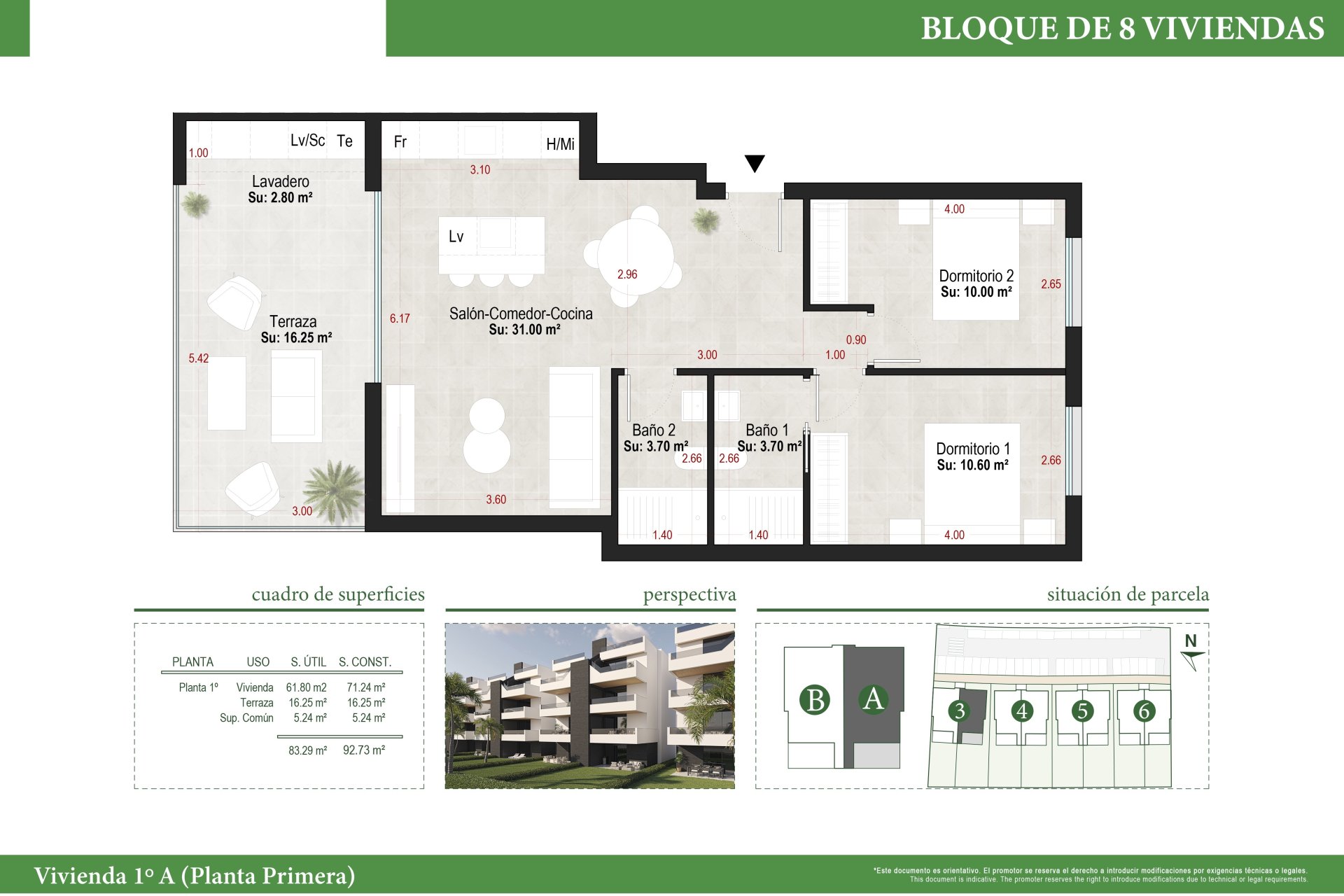 JaLigger i Alhama de Murcia, dette eksklusive boligkomplekset tilbyr et utvalg av 22 boliger som inkluderer leiligheter, første etasje og toppleiligheter. Designet for å tilfredsstille behovene til de mest krevende beboerne, er hver eiendom utstyrt med moderne og funksjonelle funksjoner. Beliggenheten er ideell for golfentusiaster, da det ligger bare 1 km fra nærmeste golfbane, og 38 km fra flyplassen, noe som gjør det enkelt å få tilgang til internasjonale forbindelser. Boligene er designet for å tilby komfort og stil, med alternativer på 2 eller 3 soverom og 2 bad, tilpasset forskjellige livsstiler og familiens behov.