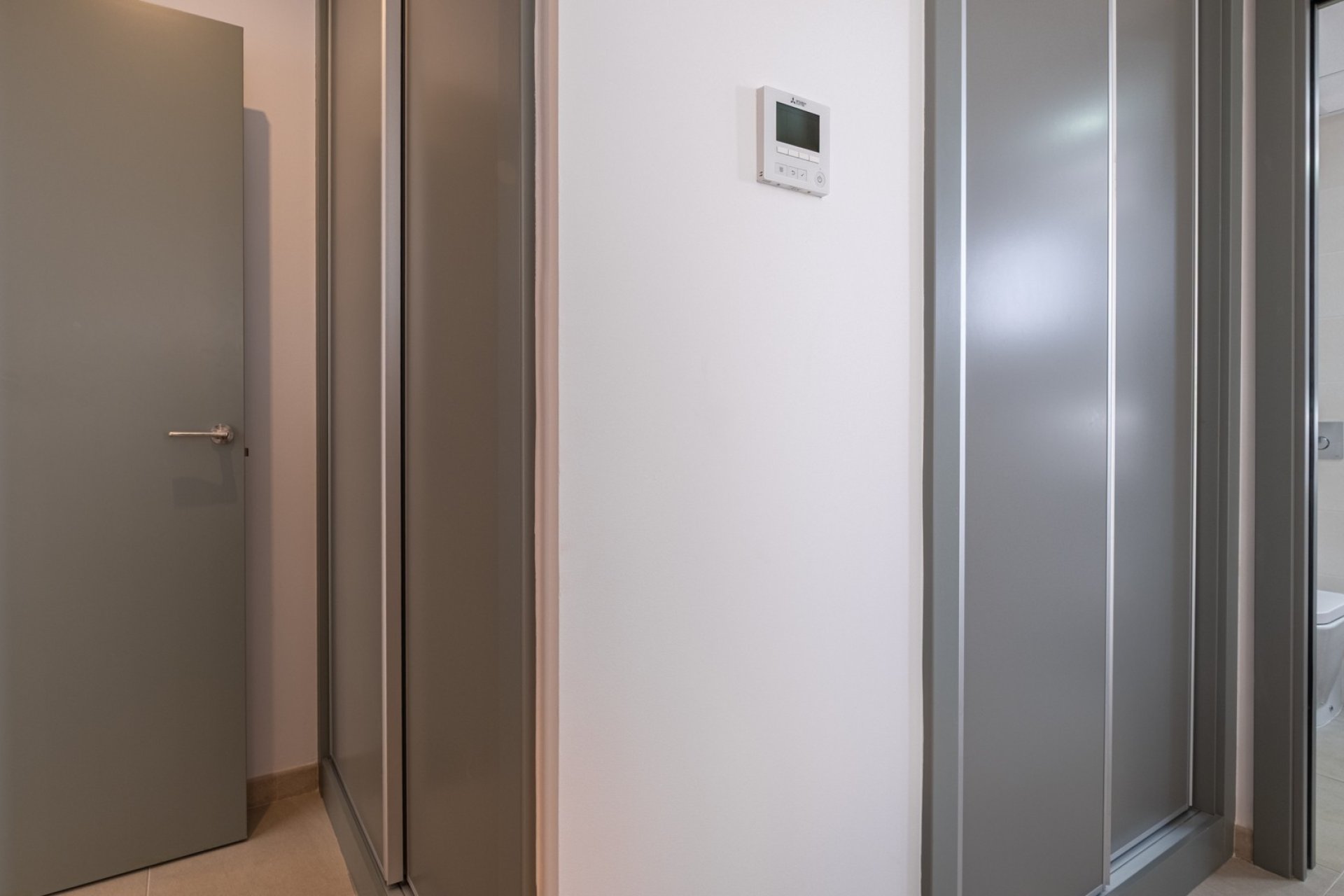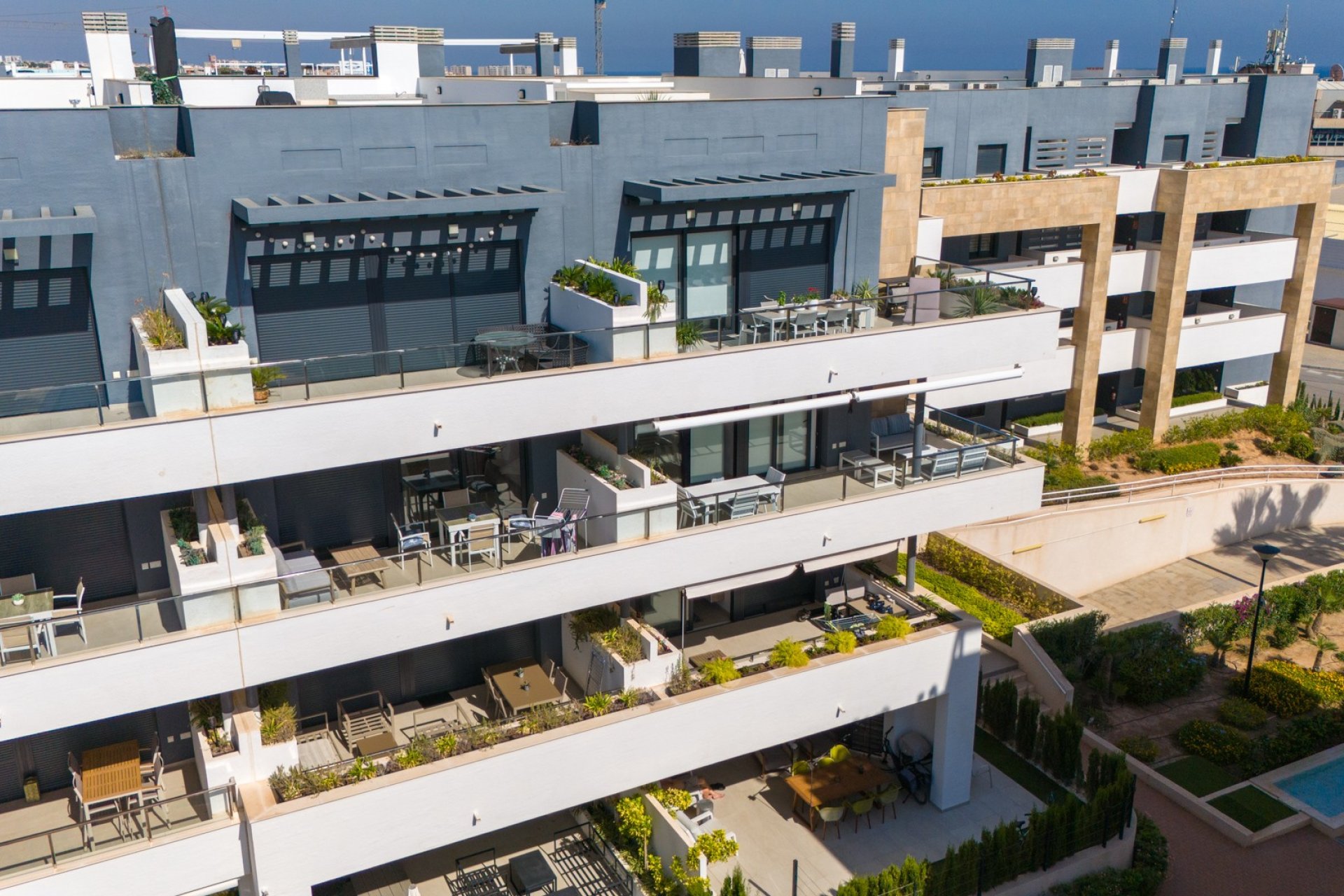 TakTen nowoczesny i stylowy apartament z 3 sypialniami i 2 łazienkami, południowy, narożny, znajduje się w prestiżowym kompleksie Flamenca Village, w samym sercu Playa Flamenca—co czyni go idealnym miejscem zarówno pod względem komfortu, jak i wygody. Apartament położony jest na drugim piętrze i oferuje rzadką kombinację przestronnego mieszkania, wyjątkowego komfortu oraz imponujący widok na morze z przestronnego tarasu o powierzchni 28 m², co wyróżnia go spośród innych nieruchomości w kompleksie. Taras wychodzi na pięknie utrzymaną wspólną przestrzeń basenową i błyszczące błękitne morze na horyzoncie, oddalone zaledwie o 600 metrów.