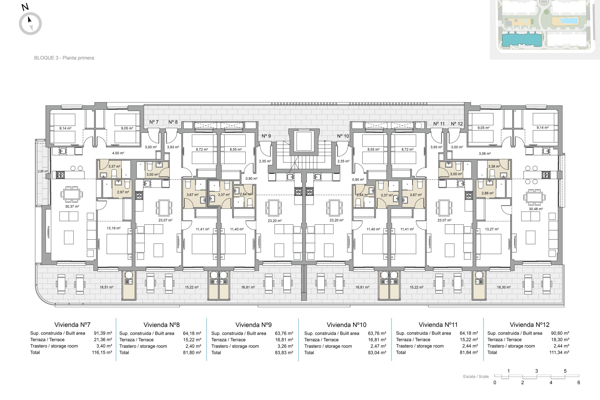 Wnętrze nieruchomości wyróżnia się nowoczesnością i funkcjonalnością. Z wbudowanymi szafami, które maksymalizują przestrzeń, niektóre jednostki mają również prywatne jacuzzi, idealne do relaksu po dniu spędzonym na słońcu.