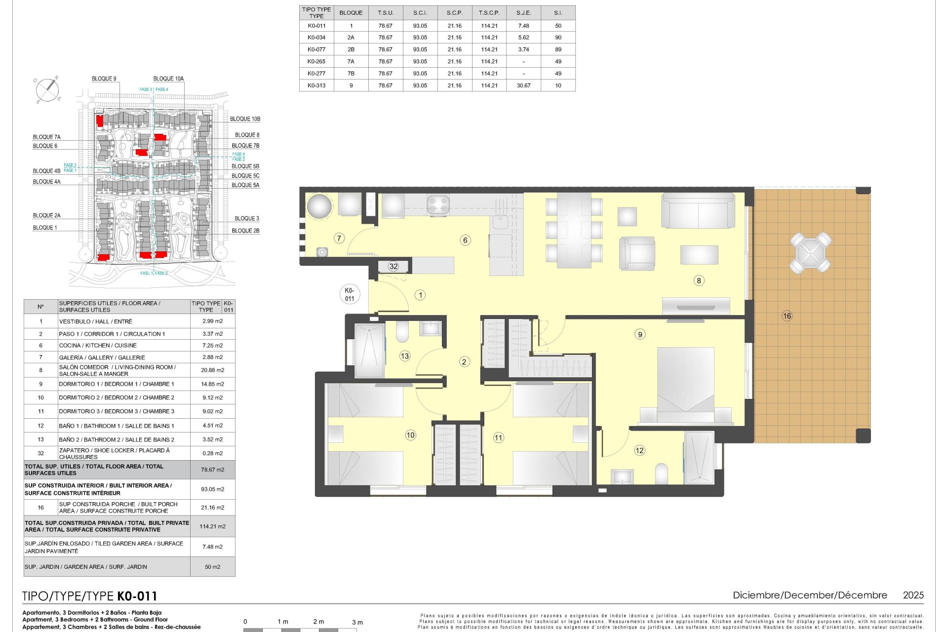 Wnętrza mieszkań są starannie zaprojektowane, aby zapewnić komfort i styl. Podłogi z gresu porcelanowego nadają nowoczesny wygląd i są łatwe w utrzymaniu. Wszystkie nieruchomości wyposażone są w wbudowane szafy, optymalizujące przestrzeń do przechowywania. Wstępna instalacja klimatyzacji zapewnia przyjemne środowisko przez cały rok. Opcje rozkładu obejmują mieszkania z 1, 2 i 3 sypialniami, z 1 lub 2 łazienkami, dostosowane do różnych potrzeb rodzinnych.