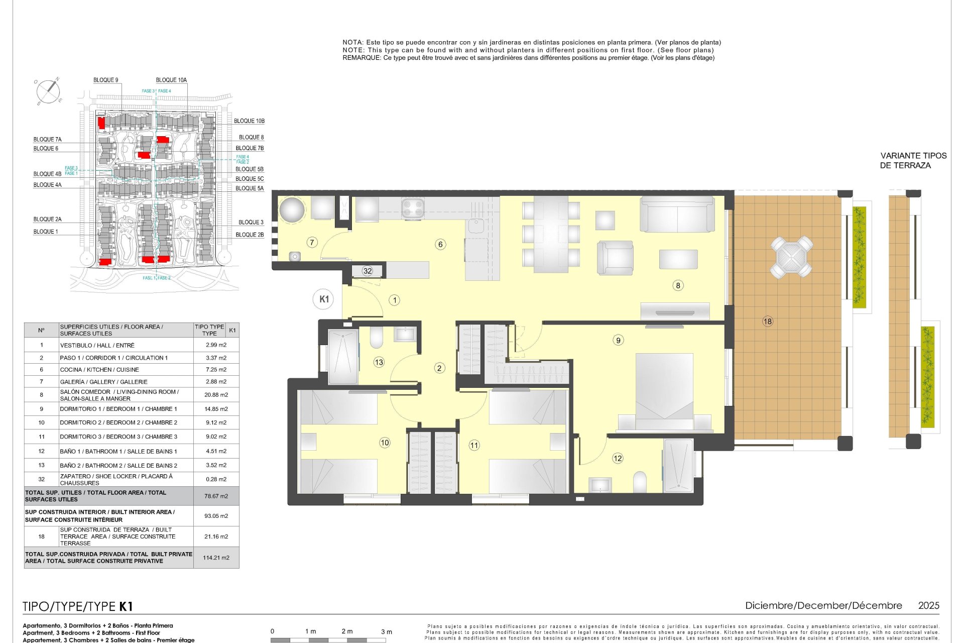 Wnętrza mieszkań są starannie zaprojektowane, aby zapewnić komfort i styl. Podłogi z gresu porcelanowego nadają nowoczesny wygląd i są łatwe w utrzymaniu. Wszystkie nieruchomości wyposażone są w wbudowane szafy, optymalizujące przestrzeń do przechowywania. Wstępna instalacja klimatyzacji zapewnia przyjemne środowisko przez cały rok. Opcje rozkładu obejmują mieszkania z 1, 2 i 3 sypialniami, z 1 lub 2 łazienkami, dostosowane do różnych potrzeb rodzinnych.