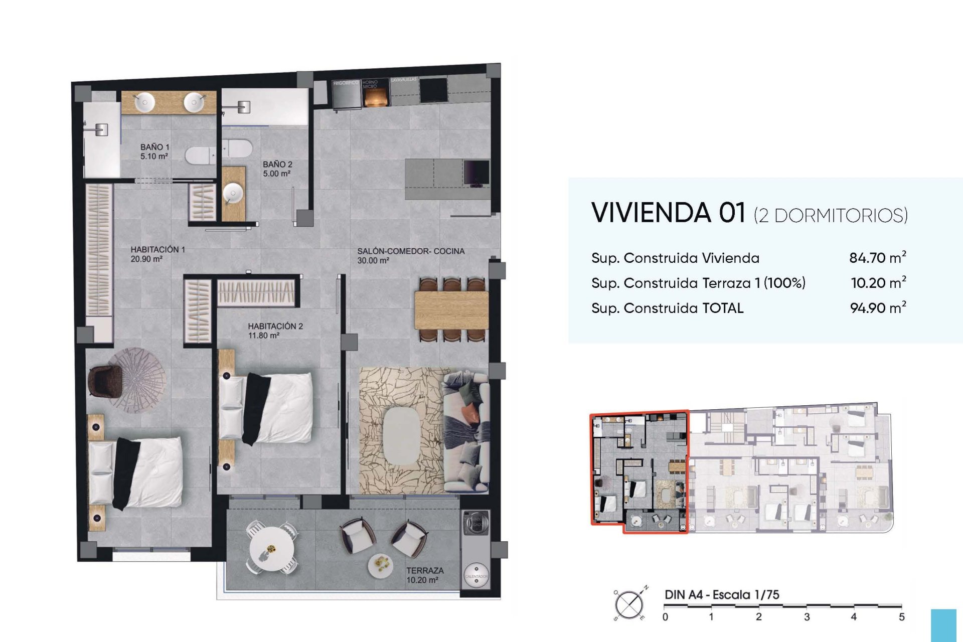 Każde mieszkanie zostało starannie zaprojektowane, wyróżniając się dwoma sypialniami i dwoma łazienkami, które zapewniają intymne schronienie dla rodzin lub par. Podłogi z gresu porcelanowego nie tylko podkreślają estetykę każdego pomieszczenia, ale także zapewniają imponującą trwałość.