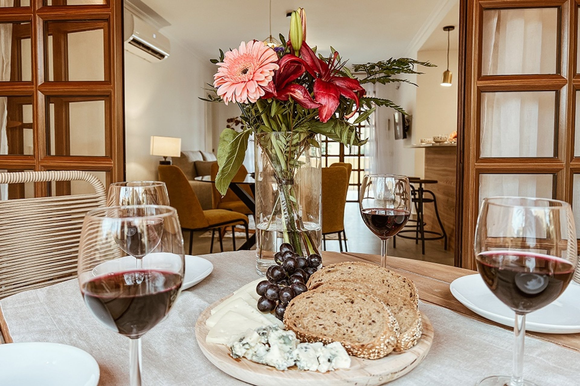 Wnętrza apartamentów wyposażone są w podłogi z gresu porcelanowego, które dodają elegancji i są łatwe w utrzymaniu. Komfort zapewnia instalacja klimatyzacji i nowoczesnych urządzeń w każdym mieszkaniu. Wbudowane szafy oferują efektywne przechowywanie, utrzymując przestrzenie w porządku i funkcjonalności. Układ apartamentów został zaprojektowany z myślą o maksymalnym komforcie, z przestronnymi strefami dziennymi i dobrze proporcjonalnymi sypialniami.