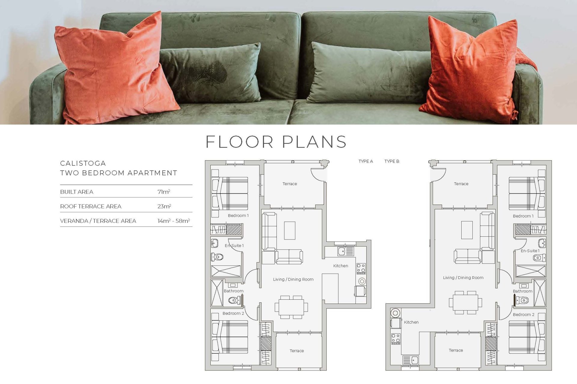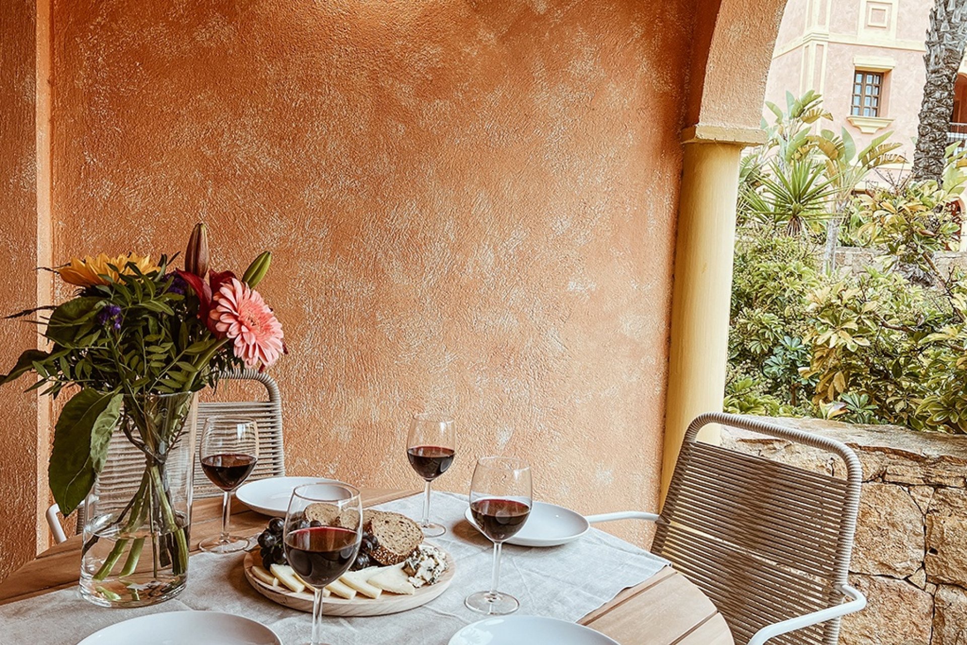 Eksteriery tego kompleksu mieszkaniowego zostały zaprojektowane z myślą o maksymalnym korzystaniu z otoczenia. Każdy apartament posiada prywatny taras, idealny do relaksu na świeżym powietrzu i cieszenia się śródziemnomorskim klimatem. Ponadto, niektóre apartamenty oferują solarium, zapewniając dodatkową przestrzeń do wypoczynku i relaksu. Strefy wspólne obejmują zadbane ogrody, idealne na spokojne spacery lub bezpieczną zabawę dla dzieci.