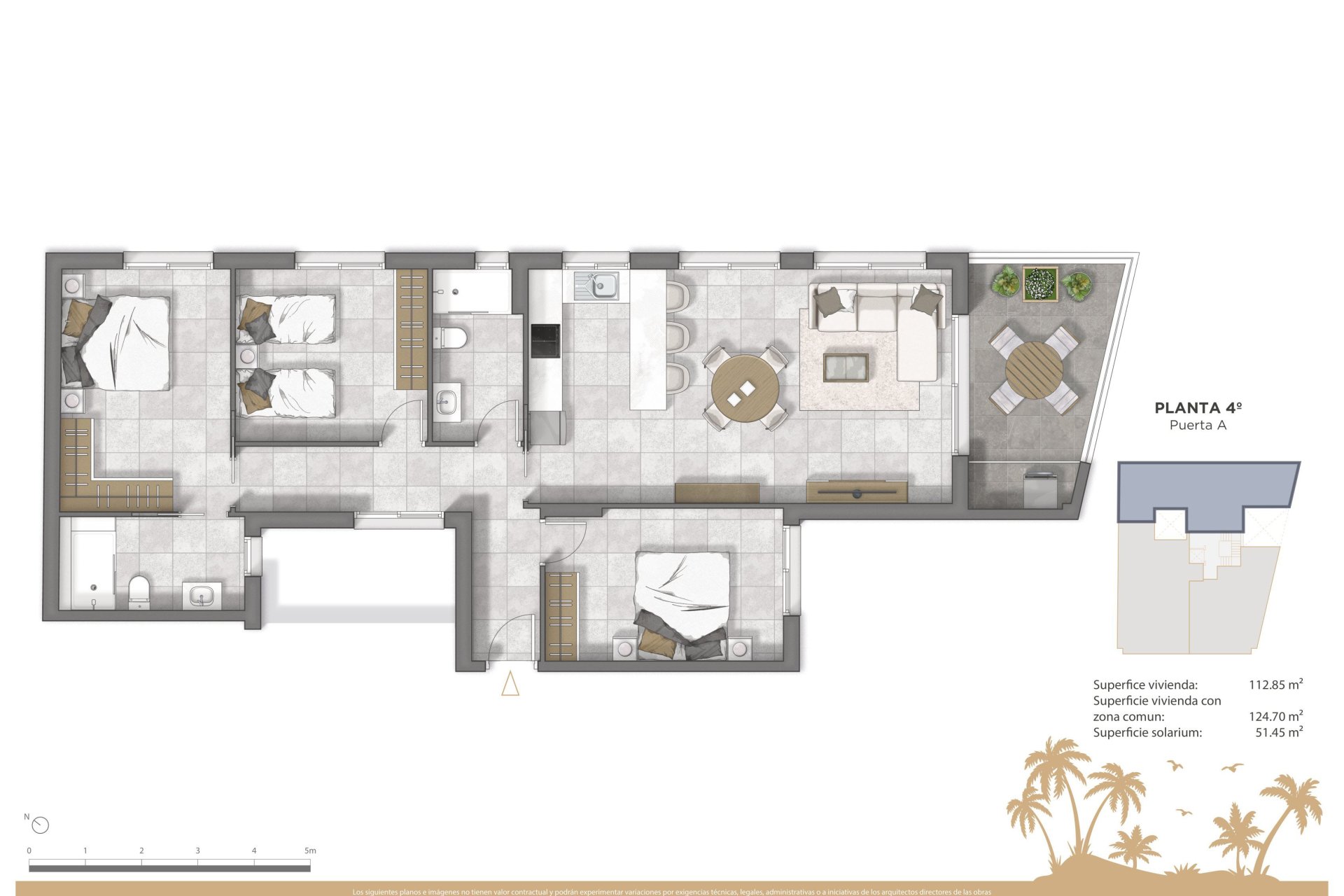 Ciesz się niesamowitymi widokami na morze z własnego tarasu, idealnego miejsca do relaksu i korzystania z świeżego powietrza. Penthouse'y oferują ekskluzywny solarium, idealne dla tych, którzy pragną opalać się w spokojnym i prywatnym otoczeniu.