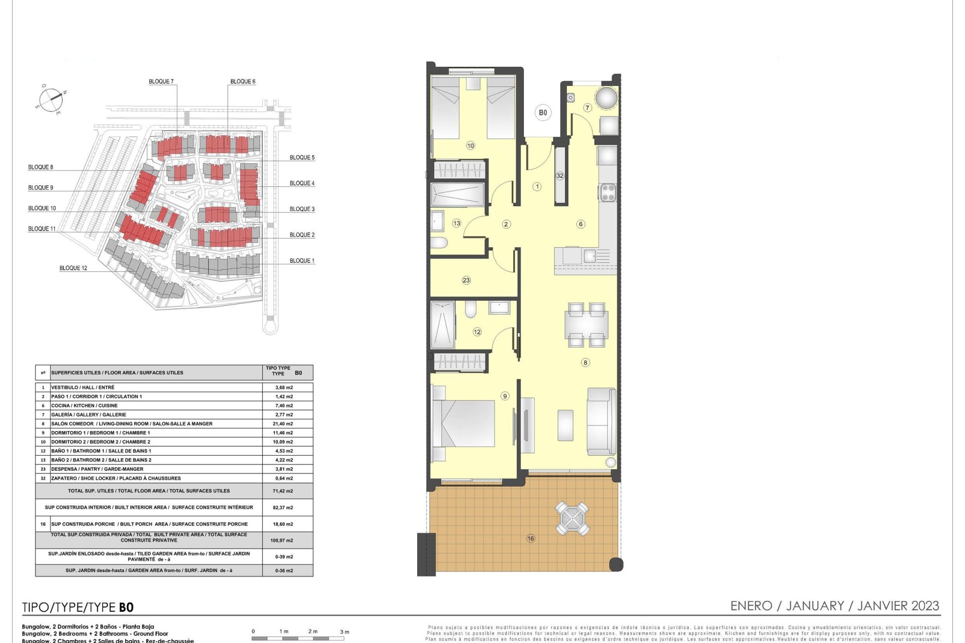 Wnętrze bungalowów zostało zaprojektowane, aby zapewnić maksymalny komfort i funkcjonalność. Opcje układu obejmują 2 lub 3 sypialnie i 1 lub 2 łazienki, dostosowane do różnych potrzeb rodzinnych. Nieruchomości są w pełni umeblowane i wyposażone w nowoczesne urządzenia. Ceramiczne i porcelanowe płytki dodają elegancji i trwałości. Ponadto, posiadają klimatyzację, ogrzewanie podłogowe i elektryczne rolety, zapewniając komfortowe środowisko przez cały rok. Wbudowane szafy oferują efektywną przestrzeń do przechowywania, a instalacja do ładowania samochodów elektrycznych dodaje nowoczesności i zrównoważonego rozwoju.