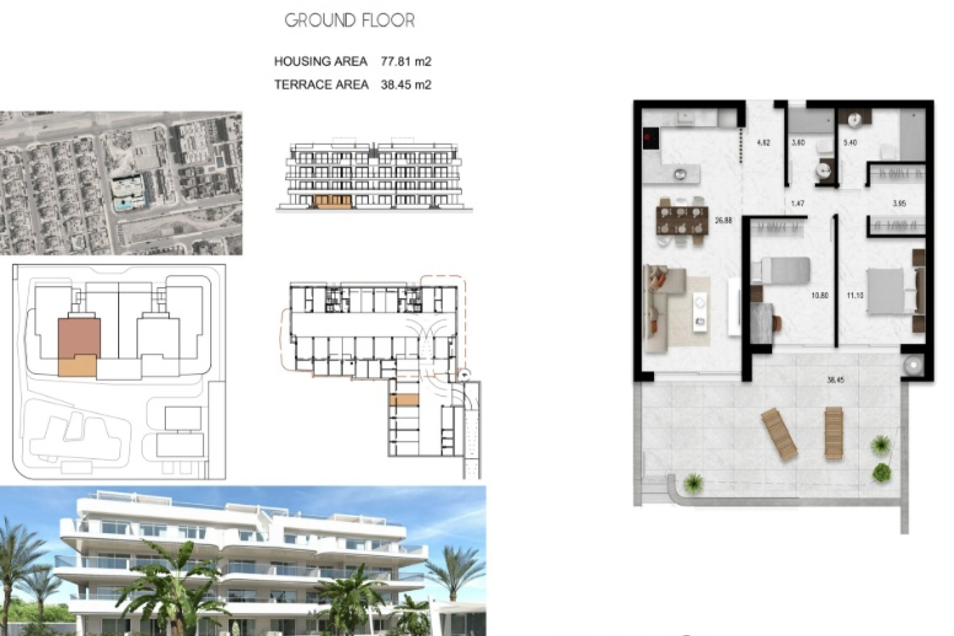 The complex offers 23 properties, including apartments, ground floors, and penthouses, all with access to a communal pool and a jacuzzi. The green areas are perfect for relaxing walks, and the communal gym allows you to stay fit without leaving home.
