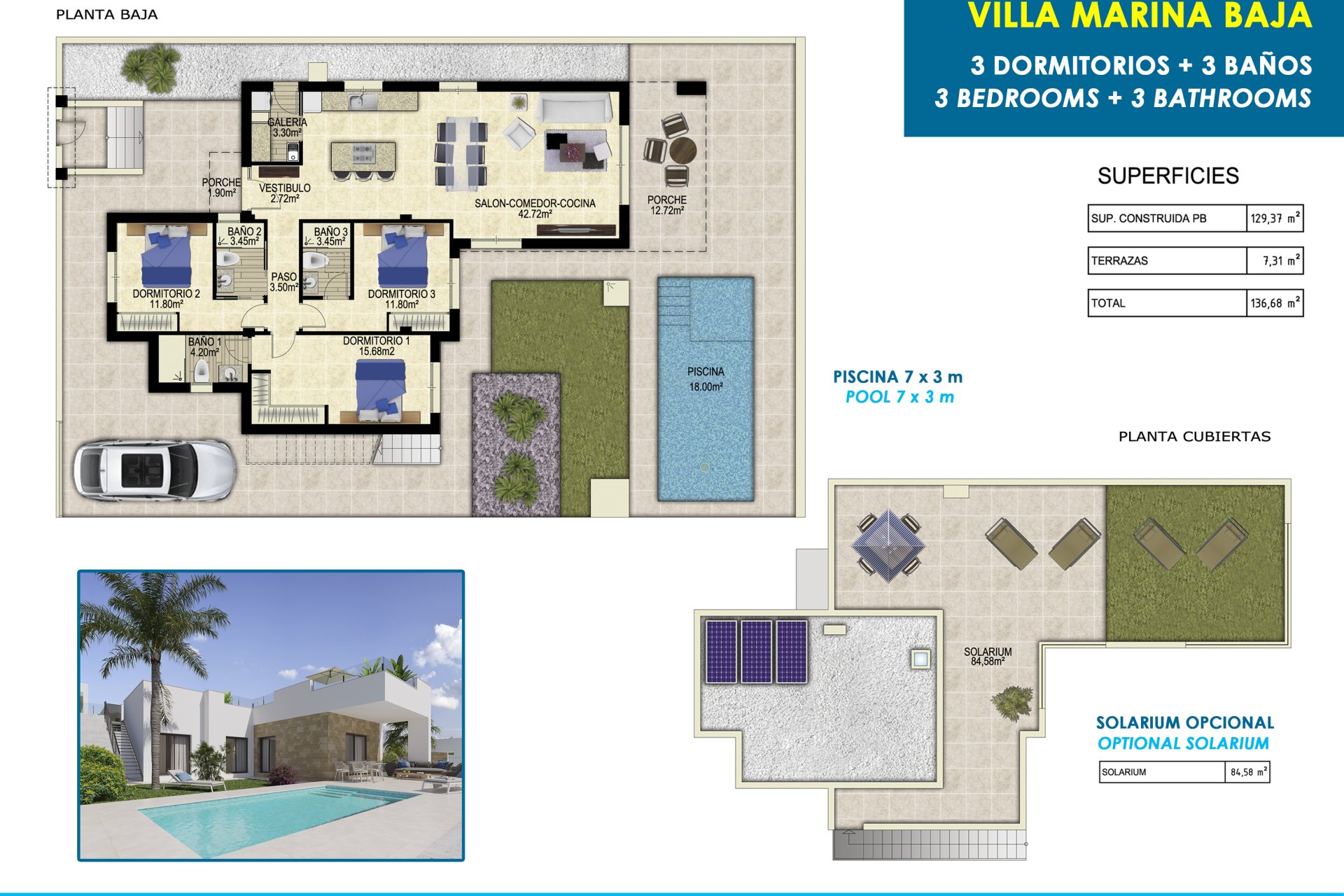 For those seeking an extra touch of luxury, there is the option to include a private solarium, perfect for sunbathing in total privacy. Each home also comes with a private pool, adding an element of exclusivity and comfort, ideal for cooling off during the warm summer days.