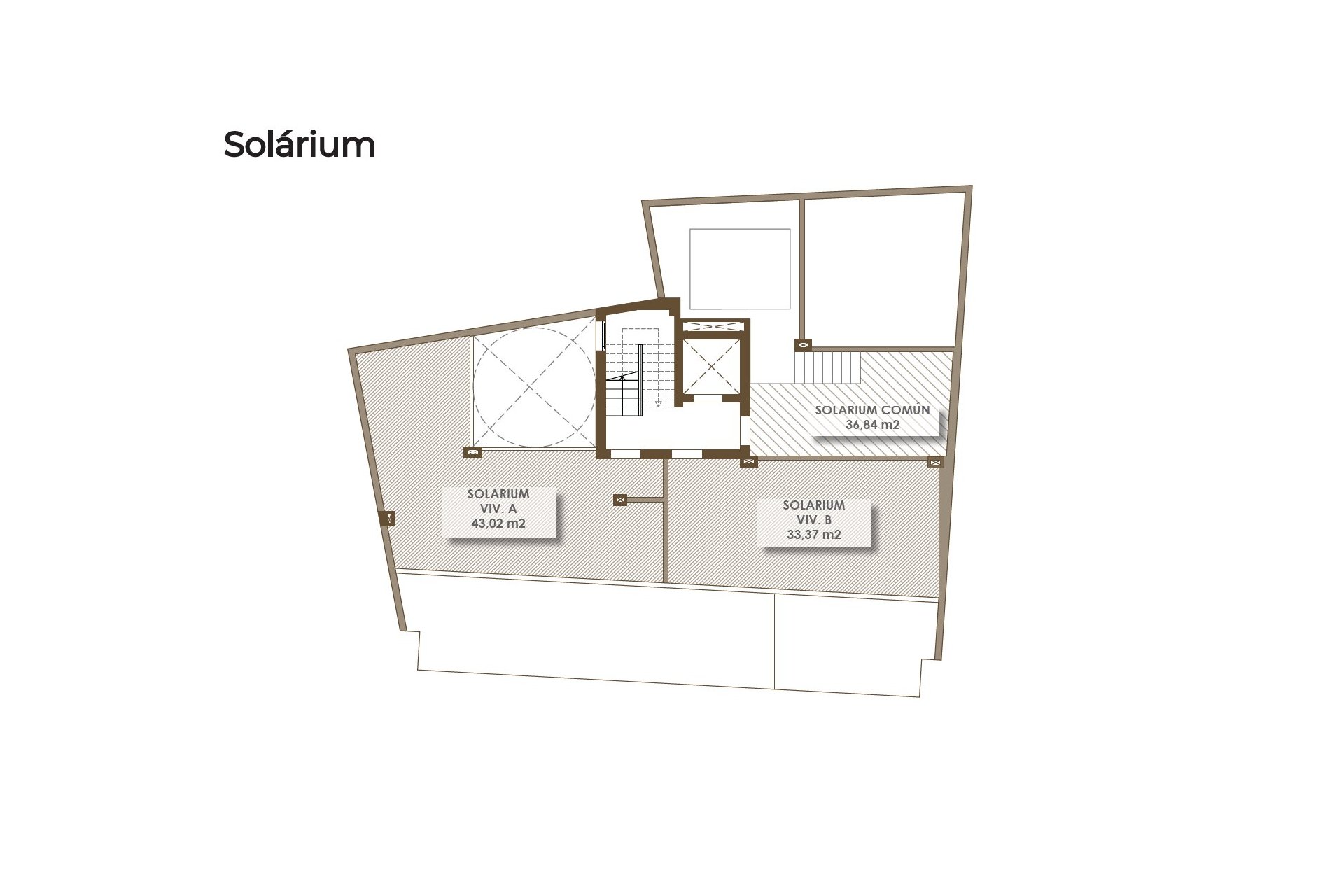 Additionally, residents can enjoy a communal solarium, an ideal space for sunbathing and enjoying moments of tranquility. This space is designed for you to disconnect in a serene environment.