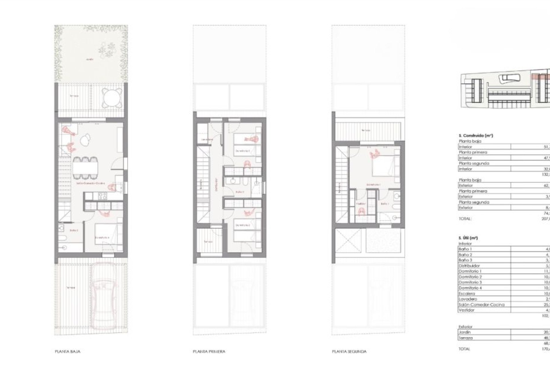 Each townhouse offers 3 spacious bedrooms and 3 modern bathrooms, designed to provide maximum comfort for the whole family. The porcelain tile finishes add an elegant and contemporary touch to the home.