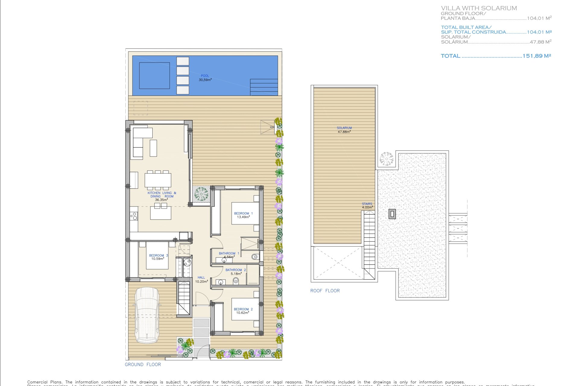 A solarium offers additional space to sunbathe in complete privacy, while the private pool in each home guarantees refreshing moments of fun.
