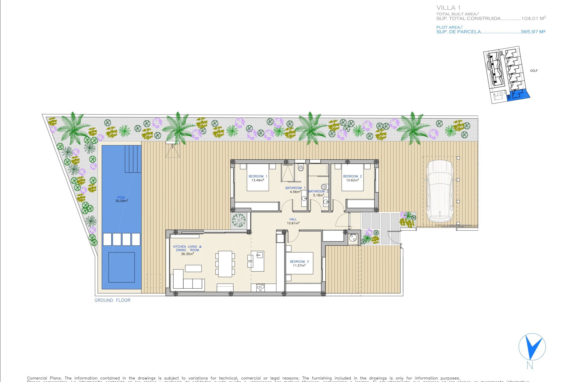 These properties are located just 100 meters from a golf course, making them ideal for golf enthusiasts. The airport, situated 44 km away, facilitates access to international connections.