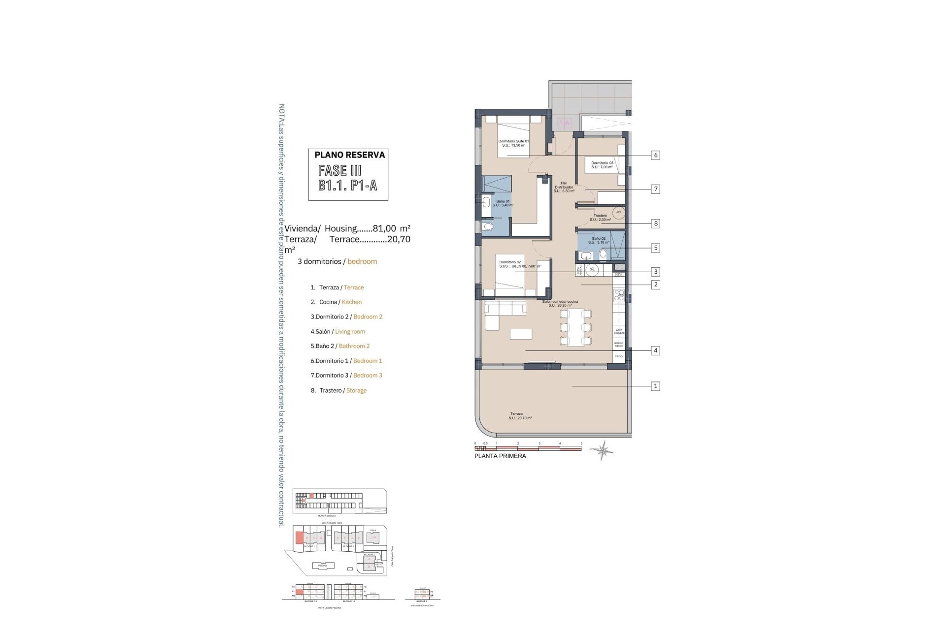 Inside, the homes are equipped with modern features that ensure comfort and style. The apartments and penthouses offer options of 2 or 3 bedrooms and 2 or 3 bathrooms, catering to different family needs. Porcelain tile floors add a touch of elegance and are easy to maintain. The kitchens are equipped with appliances, making daily life easier. Built-in wardrobes provide efficient storage, while the pre-installation of air conditioning ensures a pleasant environment year-round. Additionally, there is the option to purchase a garage, adding convenience and security.