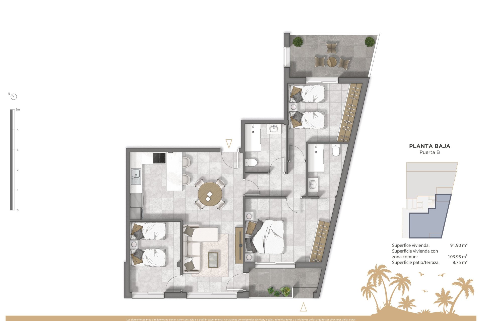 Enjoy stunning sea views from your private terrace, an ideal space to relax and enjoy the outdoors. The penthouses offer an exclusive solarium, perfect for those who wish to sunbathe in a tranquil and private setting.