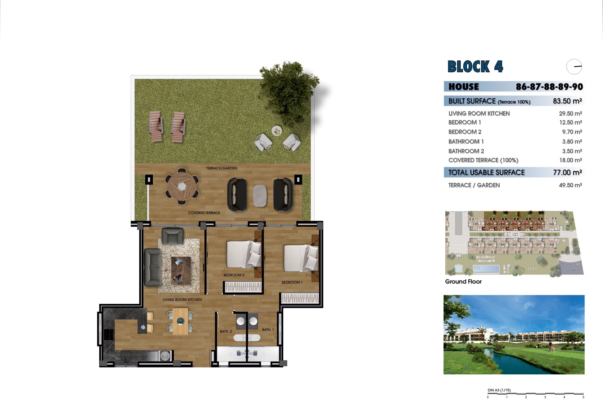 The proximity to the sea is simply spectacular. Just 1 km away, you can enjoy the sea breeze and unforgettable views. Additionally, for golf enthusiasts, a course is located just 100 meters away, providing an ideal setting for an active and relaxed lifestyle.