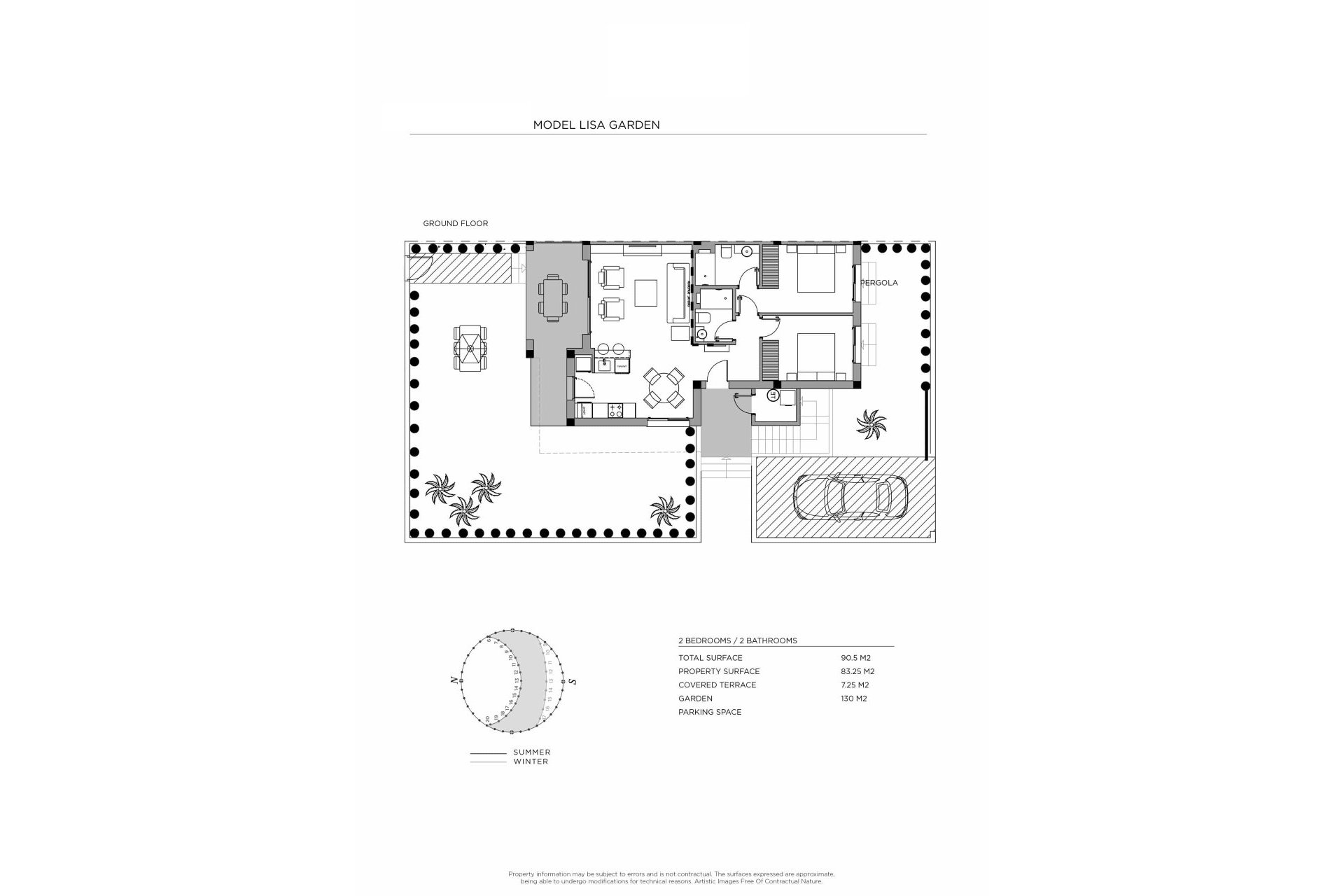 The exteriors of these homes are designed to offer a space for relaxation and outdoor enjoyment. Each bungalow features a private garden, perfect for enjoying the Mediterranean climate. Additionally, the terraces and solariums provide extra leisure space, allowing residents to enjoy unobstructed views and moments of tranquility. The presence of pergolas adds a touch of elegance and functionality, offering shade and style to the outdoor spaces.