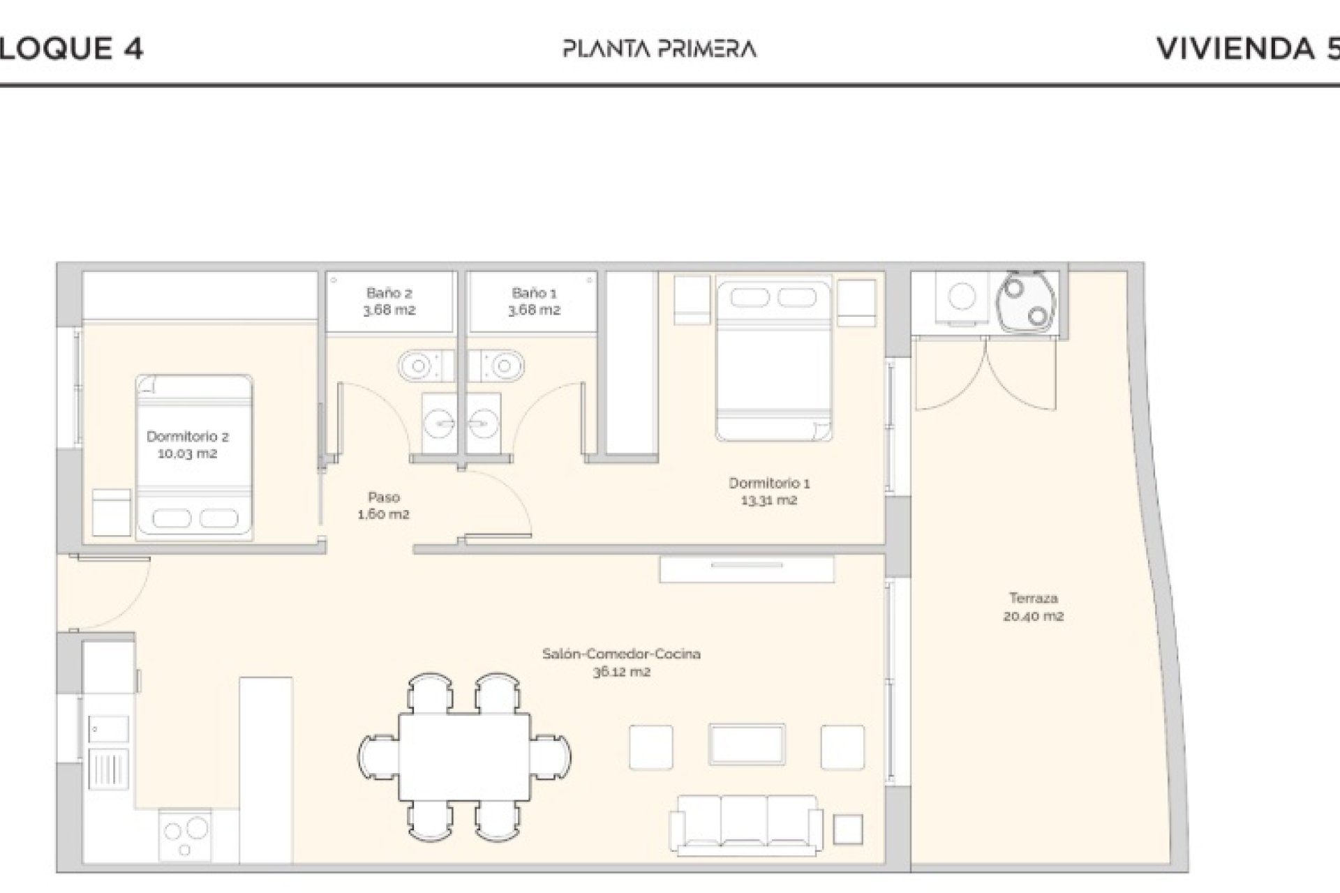 Each property has two bedrooms and two bathrooms, perfectly adapting to the needs of different types of families.