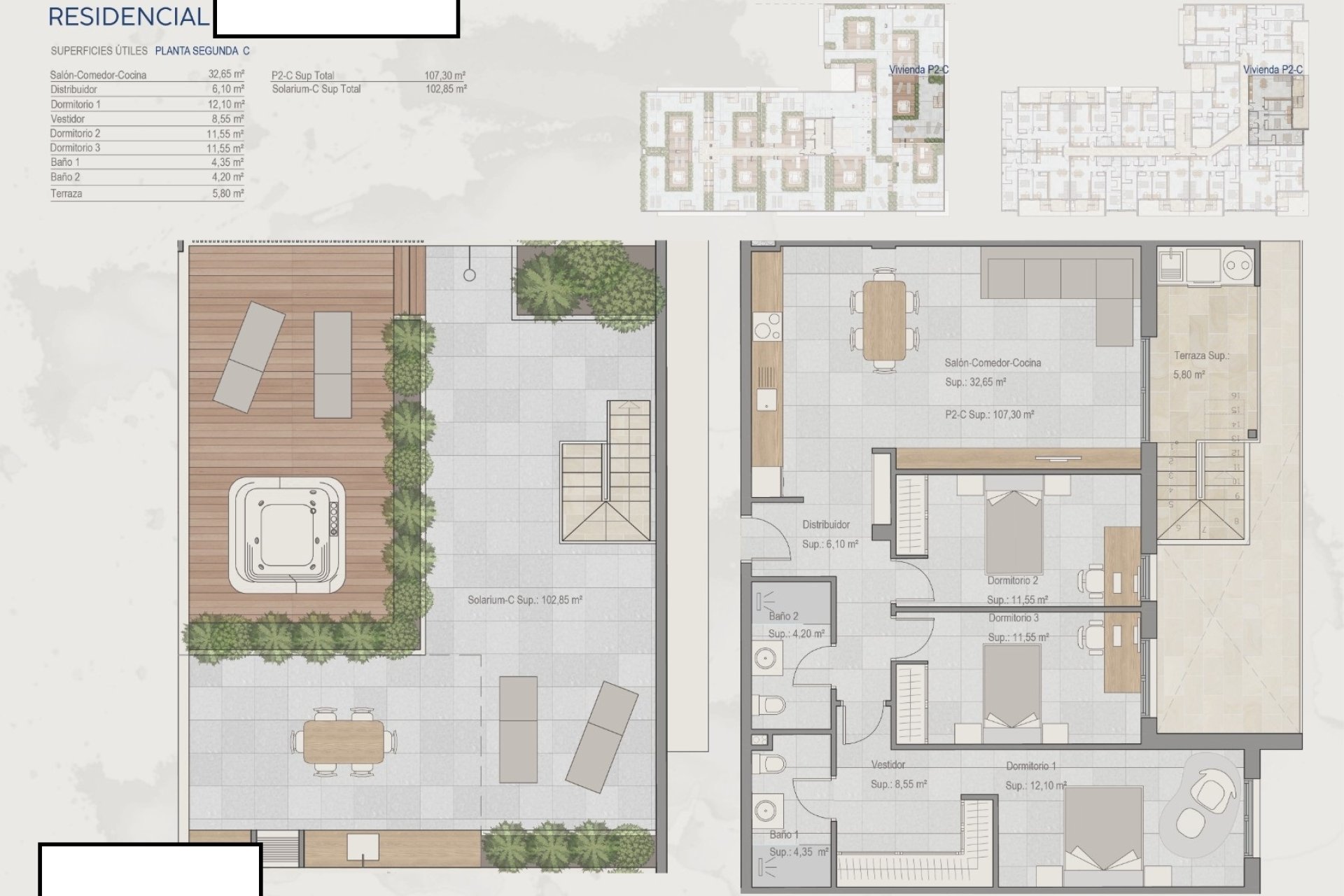 With options of 2 or 3 bedrooms and 2 bathrooms, the properties cater to various family needs. Some units feature a jacuzzi, adding a touch of luxury and relaxation to the home, turning each day into a special experience. The layout is designed to maximize space and comfort, making every corner a practical and inviting place.